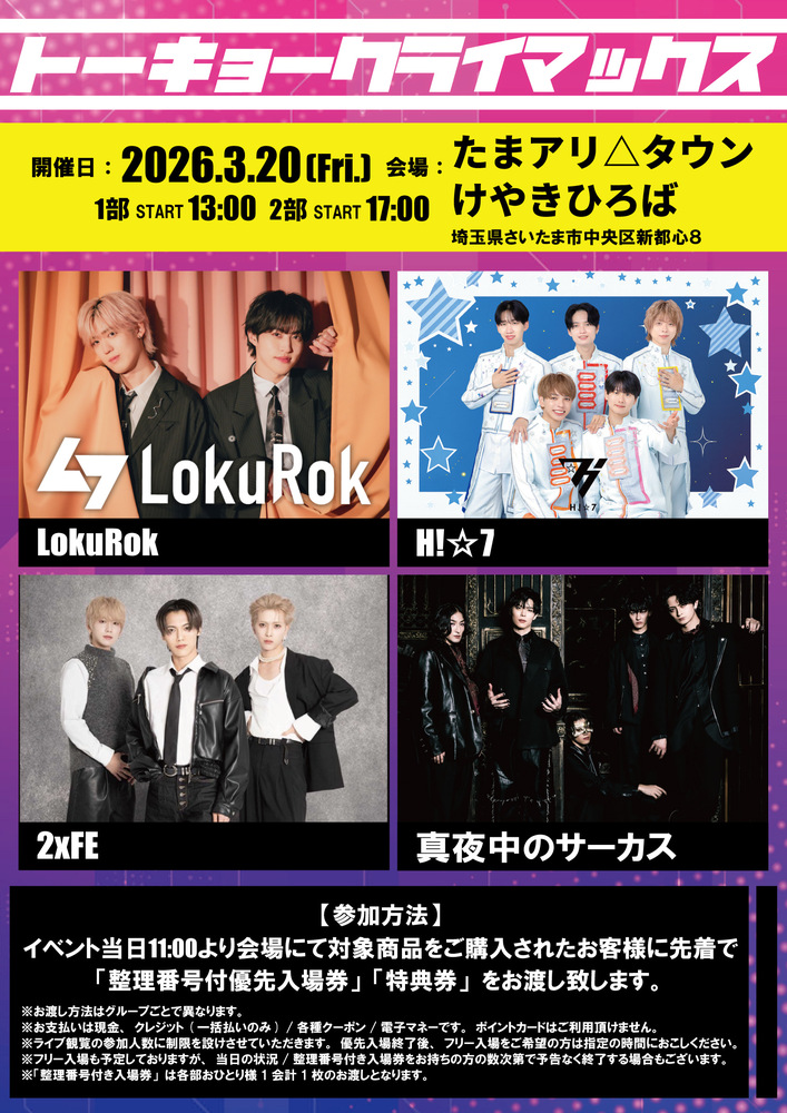※イベント観覧スペース自体が規定人数以上のなった場合、入場をお断りする場合もございます。予めご了承下さい。